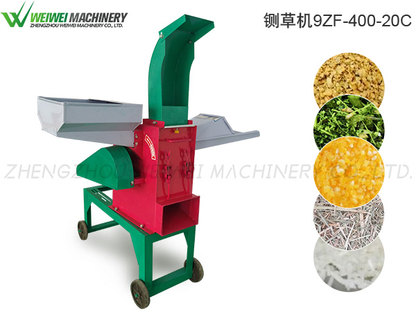 工作時(shí),被加工的物料從料斗進(jìn)入粉碎室內(nèi),受到高速旋轉(zhuǎn)的工作部件的打擊而碎裂,同時(shí)改變了物料的運(yùn)動(dòng)方向,由于高速旋轉(zhuǎn)的工作部件破壞了物料層的沉積性,因此,物料隨轉(zhuǎn)子運(yùn)動(dòng),在此過(guò)程中,草料或顆粒反復(fù)受到工作部件和機(jī)體的碰撞及顆粒間的碰撞、摩擦,從而被逐步粉碎至其幾何直徑小于篩孔直徑,在離心力和氣流的作用下,被粉碎后的物料穿過(guò)篩孔漏入粉料室從出料口排出,而被鍘斷的草料亦可以高噴口射出。