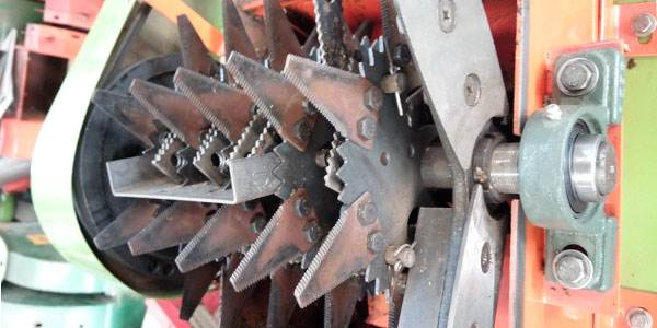 使用UC系列,由高碳鋼精密加工而成,可自動(dòng)調(diào)節(jié)平衡,使用維修方便。并且主機(jī)輪加配重輪,增加配重,慣性大提高穩(wěn)定性省動(dòng)力;刀片提高破碎率。