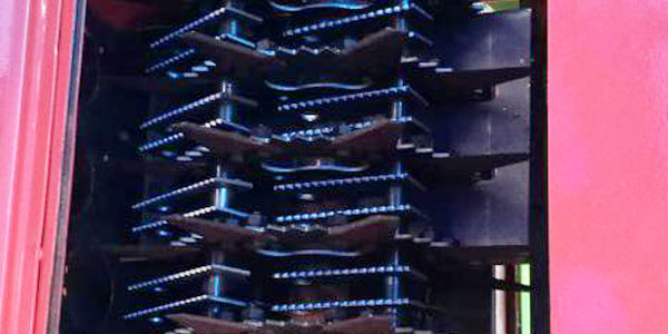 多錘片設計提高物料破碎率。并且錘片雙面可用,鋸齒錘片磨損無棱角后,用戶可以自己調頭更換,但是錘片不能互相更換,也不能隨便換新,以免影響轉子運轉的平衡